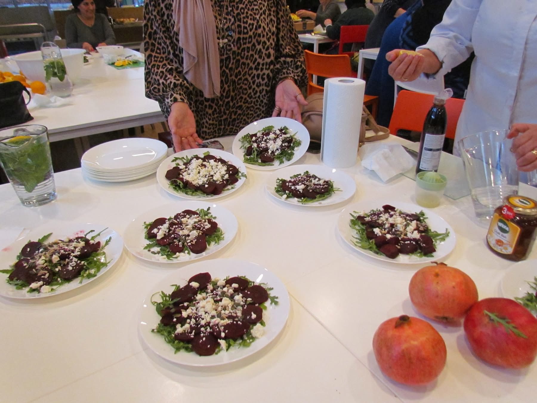 Na een informatieve presentatie van Zamira en Bouchaib, waarin zij vertelden over gezond eten en bewust boodschappen doen, gingen de deelneemsters enthousiast aan de slag. Onder deskundige begeleiding van chef-kok Soua Bibouda bereidden de vrouwen een complete maaltijd. De groep was zeer divers, wat zorgde voor mooie uitwisselingen en een warme sfeer.